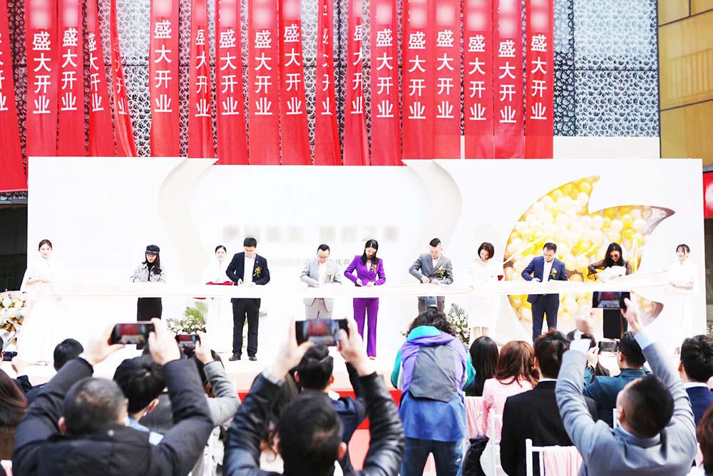 剪彩儀式:邀請6位高管與重要客戶代表共同剪彩,配合禮花機彩帶噴射。